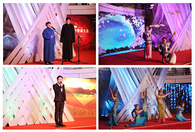 经销商大会上,吸引眼球的不光有抽奖环节,还有精彩纷呈的节目。嘻哈包袱铺表演的相声《恭喜发财》引人捧腹。古典杂技表演,技艺精湛,令人叹服!男声独唱《香醉人间五千年》起伏的律调更是将观众带进了“香醉人间”。舞蹈《辞旧迎新》舞姿优美,配合悠扬的伴奏旋律,美轮美奂。