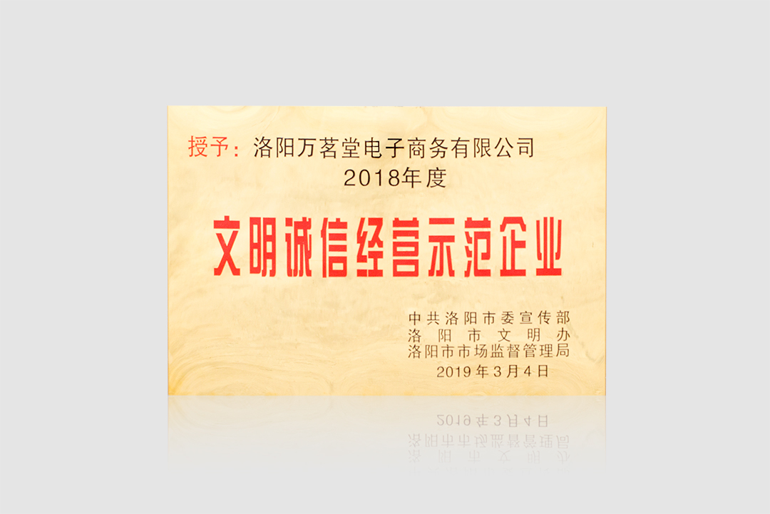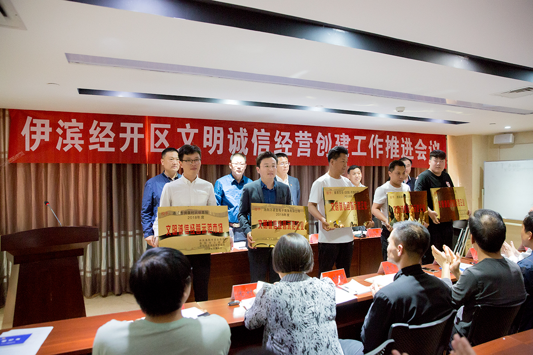 2019年5月9日,伊滨经开区文明诚信经营创建工作推进会议在洛阳市伊滨区商会大厦召开,政府相关领导及相关企业代表出席会议。按照洛阳市委宣传部、市文明办、市市场监督管理局的安排,2018年,洛阳市在全市范围内开展了争创“文明诚信经营示范市场、文明诚信经营示范企业、文明诚信经营示范商户”活动。万茗堂,多年来积极践行诚信经营理念,参与社会信用体系建设,受到了政府和社会各界的一致认可,荣获“2018年度文明诚信经营示范企业”荣誉奖牌。