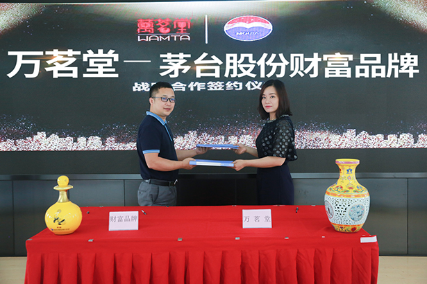2019年8月,在北京大兴区星光影视基地,中国文化创意酒类运营平台万茗堂与茅台股份财富品牌正式签约,达成战略合作关系。北京万茗堂商贸有限公司总经理王艳、茅台股份财富品牌总经理陈涛共同出席本次活动。本次活动意义重大,这不只是万茗堂企业实力的体现,也是万茗堂在整个酒水行业迈出的又一坚实步伐,更意味着万茗堂将为消费者带来更高端的酒水体验,具有里程碑的纪念意义。
