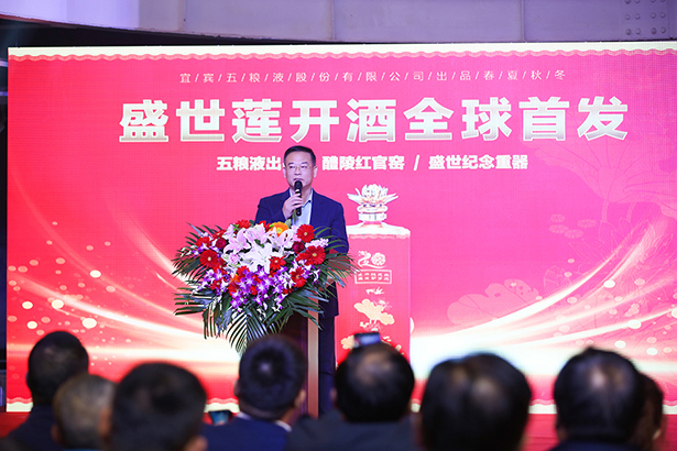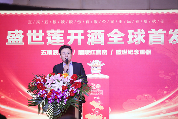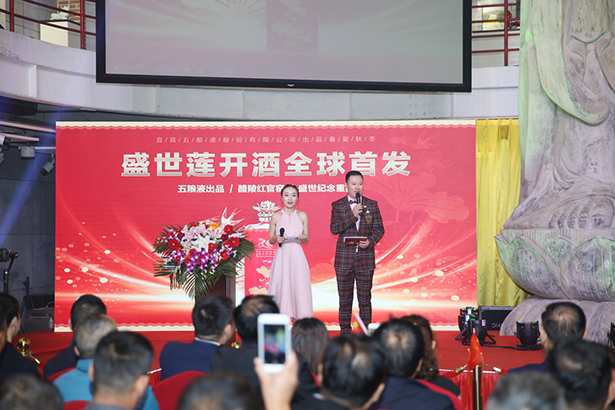 五粮浓香系列酒公司总经销品牌部长朱莉以新中国成立70周年和澳门回归祖国20周年为时代背景,讲解了春夏秋冬盛世莲开酒在2019年这个特殊年份发行的重要意义。这款产品既是对祖国献礼,也是对盛世致敬,将为热爱祖国、热爱五粮液的全国人民带来全新体验,感受盛世中华的强大!