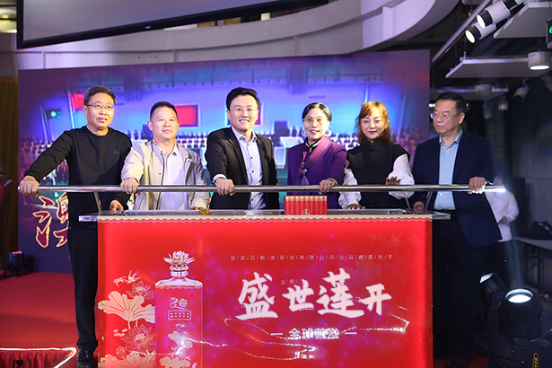 随后,活动迎来了最受瞩目的环节,五粮浓香系列酒公司总经销品牌部长朱莉、湖南省陶瓷行业协会秘书长张海涛、北京万茗堂商贸有限公司副总裁李庆伟以及万茗堂客户代表等嘉宾再次登台,共同启动春夏秋冬盛世莲开酒全球首发,现场观众共同见证了这一重要时刻。