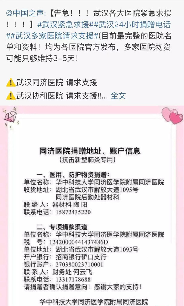 万茗堂第一时间联系武汉相关医院与机构,力求以最快的速度让爱心到达最需要的地方,根据武汉疫情防控指挥部公开的定点医院捐赠通道,我们与政府协调后选择了华中科技大学同济医学院附属同济医院(以下简称“武汉同济医院”)作为受捐对象,百年历史的武汉同济医院是新冠肺炎疫情防控定点医院,同时是武汉最早收治新冠肺炎病患的几家三甲医院之一。