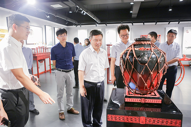 在小雨国际集团公司总顾问、执行董事刘冰的带领下,伊滨区党工委副书记、管委会主任张向阳一行领导参观了万茗堂办公楼、办公职场和私人酒博物馆展厅,深入了解万茗堂的企业文化、企业机制及企业管理等情况。