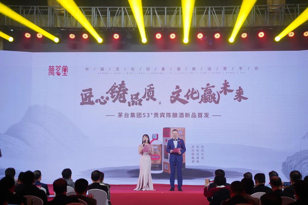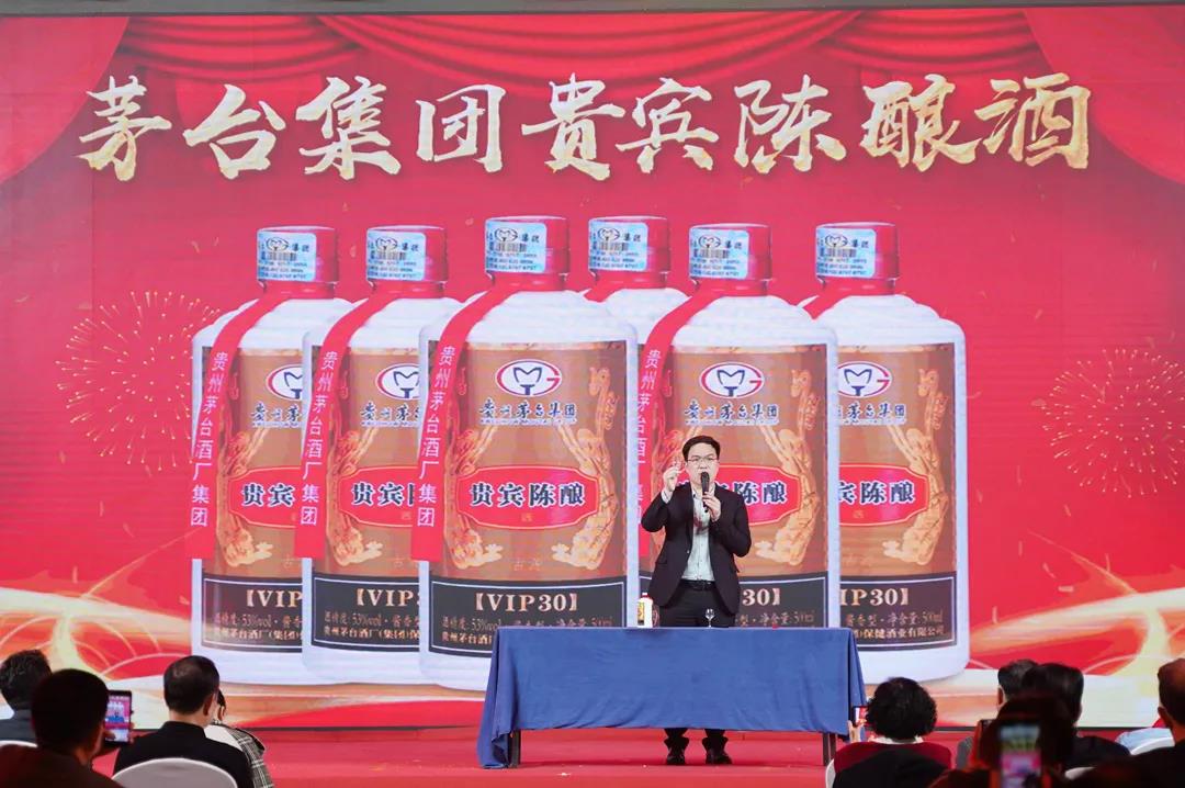随后,备受期待的53度古源贵宾陈酿酒新品首发仪式正式启动。中国酒业协会副秘书长刘振国、集团执行董事、总顾问刘冰、万茗堂副总裁李庆伟以及优秀代理商代表,共同启动新品发布仪式。在大家热切期盼的目光下,万茗堂市场营销中心总监、国家一级品酒师程煜老师为大家详细介绍了古源贵宾陈酿酒,还现场为大家讲解演示了酒水品鉴的方法。
