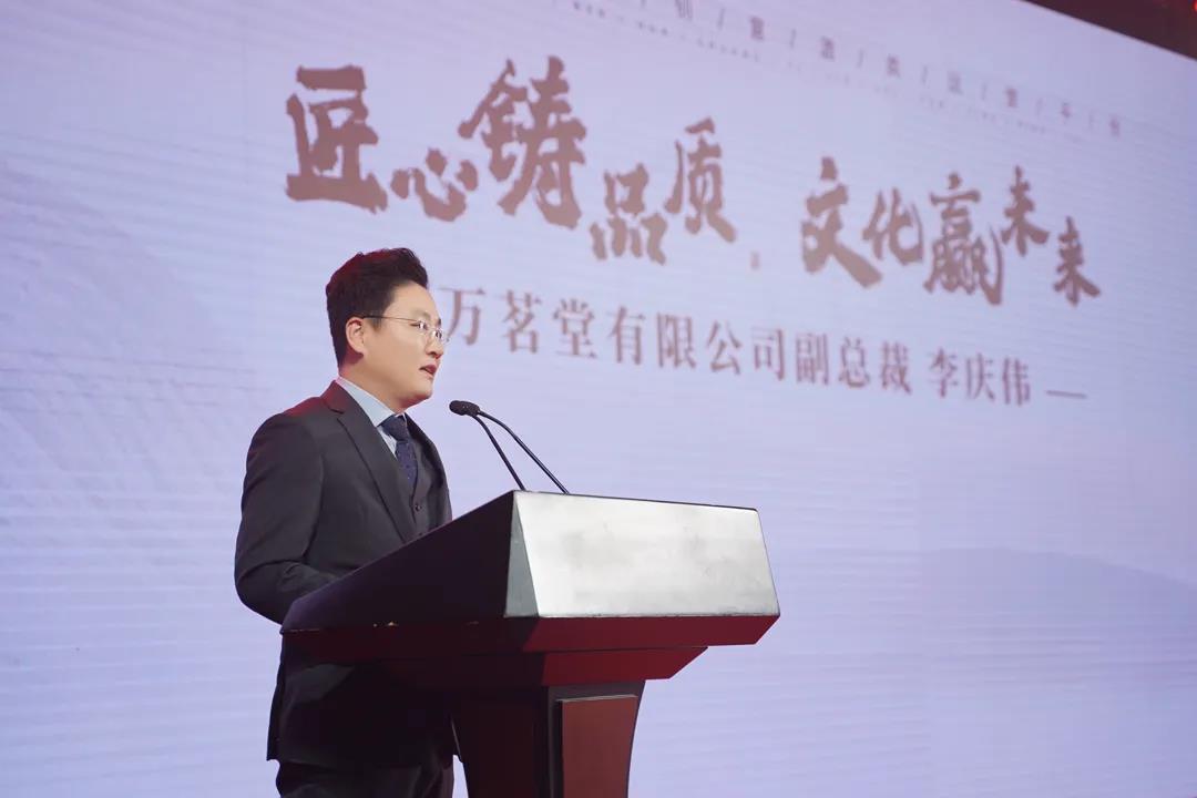 在一段富有中国水墨画意蕴的舞蹈节目热闹开场下,万茗堂2020年代理商答谢会暨茅台集团53度古源贵宾陈酿酒新品发布会正式拉开了序幕。大会现场,万茗堂副总裁李庆伟发表开场致辞,向一众嘉宾表示热烈的欢迎,并对本次远道而来的各位代理商朋友和嘉宾们以及线上积极参与互动的观众们,致以真诚的感谢。他说,万茗堂的所有发展与成就,离不开所有代理商朋友们的支持,是大家的陪伴与信任带给了万茗堂铸就辉煌的强劲动力。