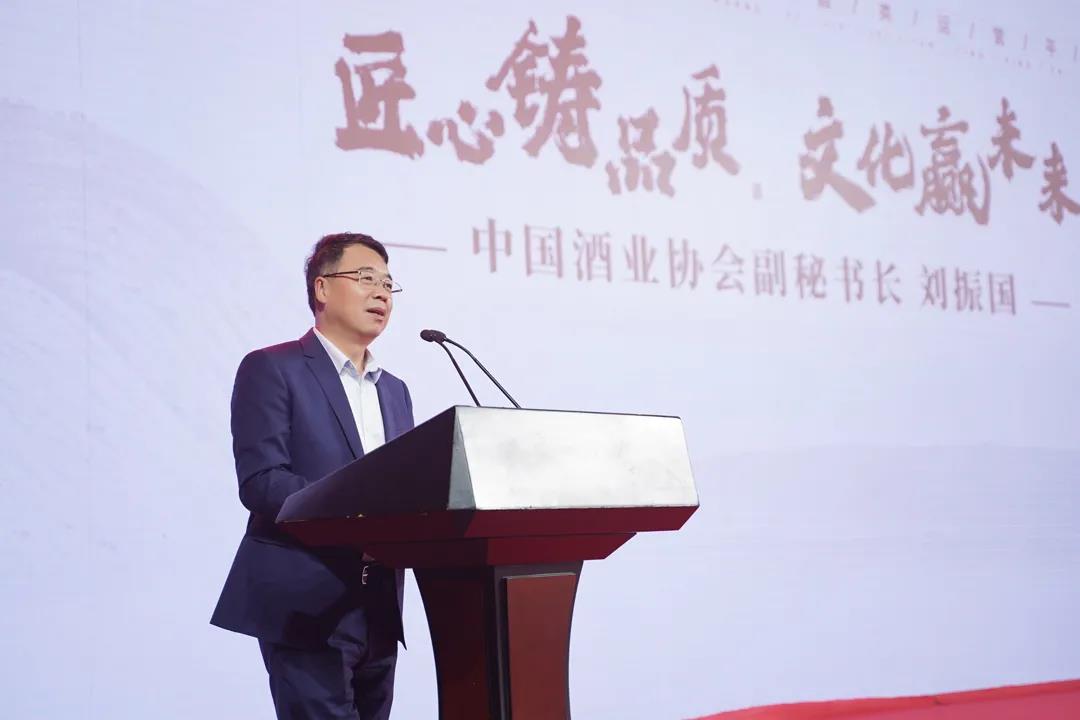 在众嘉宾热烈的掌声中,迎来了特邀嘉宾“中国酒业协会副秘书长刘振国”的致辞。他表示很开心能参加本次盛会,并对万茗堂在酒水行业的成就给予了高度认可和赞扬。还结合当前中国酱酒市场,对茅台53度古源贵宾陈酿酒未来发展趋势发表了专业意见。他指出,随着酱酒市场扩容、价格提升、产能受限,以及消费市场的扩大和利益双重驱动,未来五年酱酒仍然稀缺。万茗堂能够拿到这款53度古源贵宾陈酿酒实在是机会难得,并且这也是一款不可多得的优级酱酒。最后他还表达了对本次活动和嘉宾们的美好祝福。
