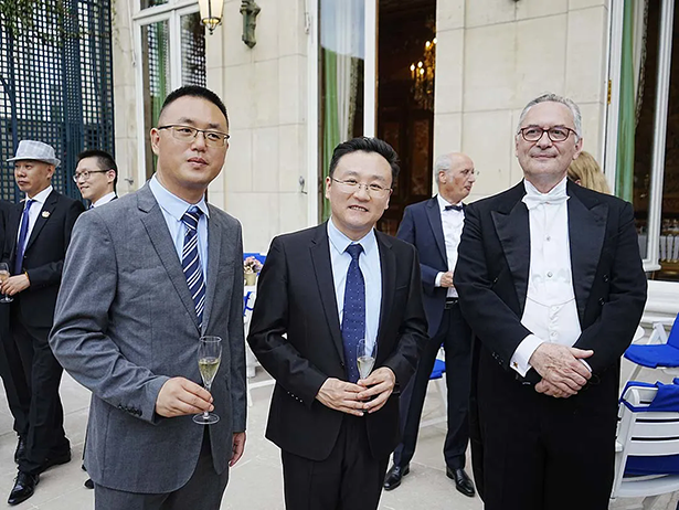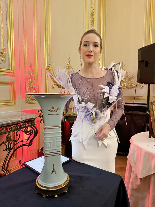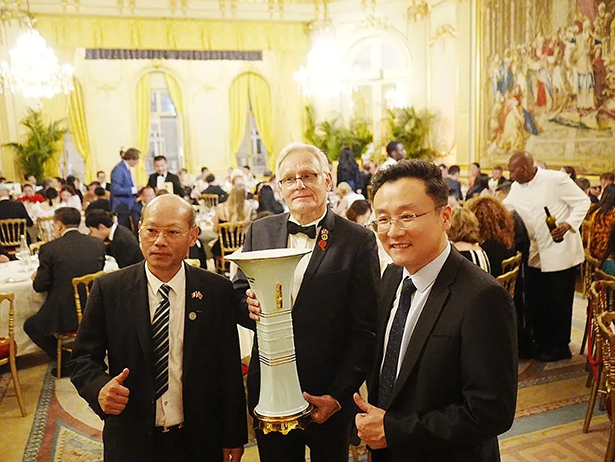 晚宴现场,勇士的荣耀辉煌巴黎·凯旋尊精美的器型、优雅的外观、独具中国艺术魅力的天青色,深深吸引了到场宾客的目光。