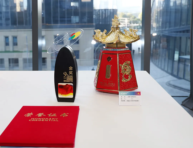 大赛设置的有金、银、铜、优秀奖及评委特别创意奖,各工艺美术大师、院校教授、文博文创专家、文化学者等多位行业专家担任本届大赛的评审委员,对参赛作品从文化性、创新性、工艺性、实用性等多维度进行点评与打分。凭借着厚重的历史文化内涵、创新独到的设计,对中国传统文化精髓的深刻诠释与现代传承意义表达,五粮液股份真龙天子•故宫百年纪念酒最终在此次大赛中斩获金奖!