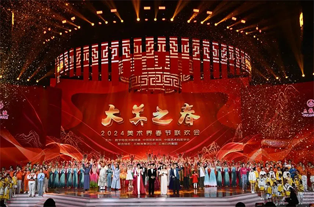 “大美之春”美术界春晚是为繁荣、发展美术事业而精心打造的综合性大型文艺晚会,自2012年起已走过十多个年头。作为一年一度的文艺盛事,“大美之春”春节晚会汇集了全国各大美术机构及各界精英,不仅有书、画、诗、舞、音、律等异彩纷呈的表演,更融入了AI科技等时代元素,以富于创新的表演形式,践行赓续华夏文明,谱写艺术华章的文化使命。