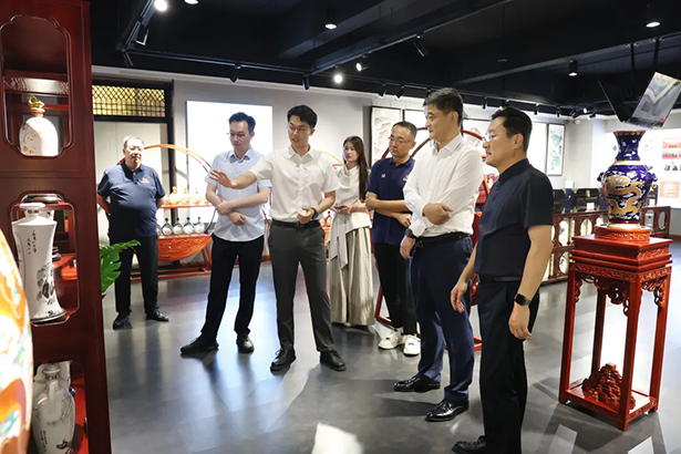 随后宋平一行重点参观了五粮浓香文创博物馆和私人酒博物馆,对万茗堂将文化美学、非遗技艺等与酒水相融合的创新实践给予高度评价,高度赞赏万茗堂产品设计的文化跨界融合思维,并认为万茗堂通过酒文化、瓷艺术、传统文化与家居设计的有机融合,打造出独具特色的文化体验空间,成功实现了传统文化的创造性转化和创新性发展。参观交流中宋平一行对万茗堂雄厚的团队实力、深厚的文化积淀和企业愿景有了更深刻的认知,为双方合作奠定了坚实基础。