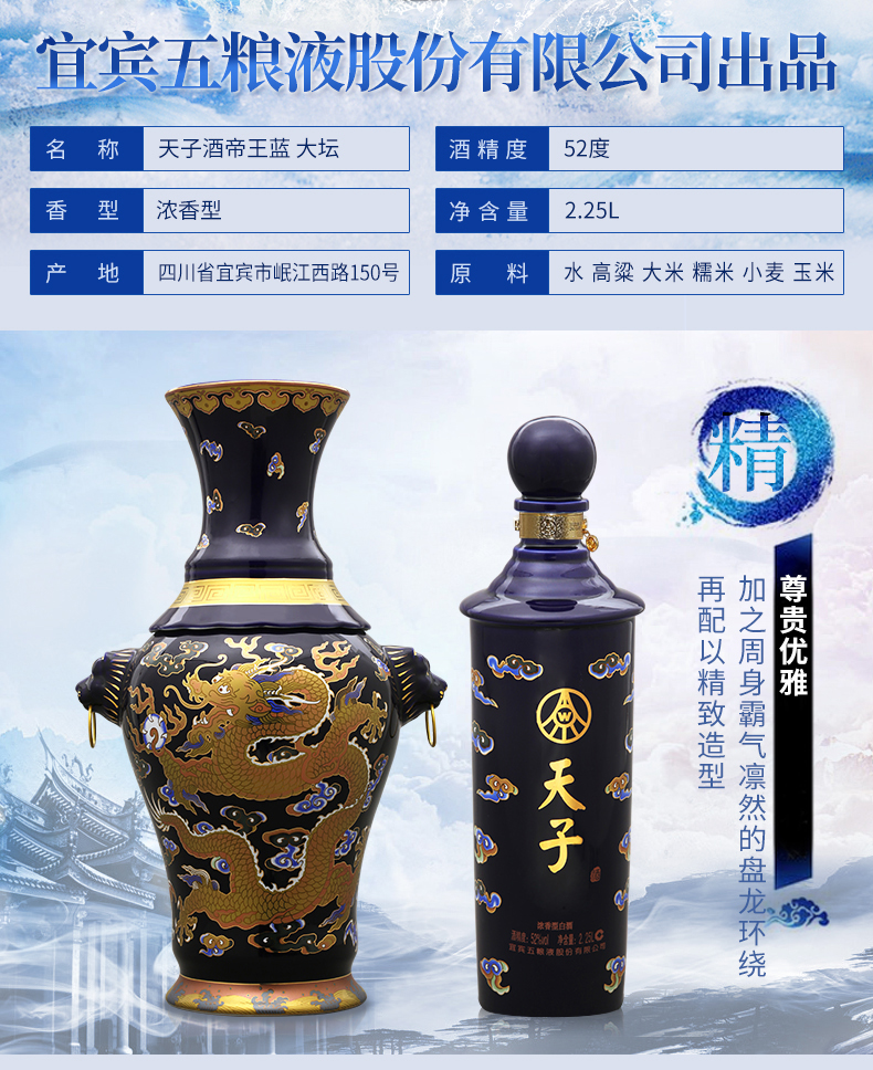 - 宜宾五粮液股份有限公司出品 52°天子酒帝王蓝2.25L大坛
